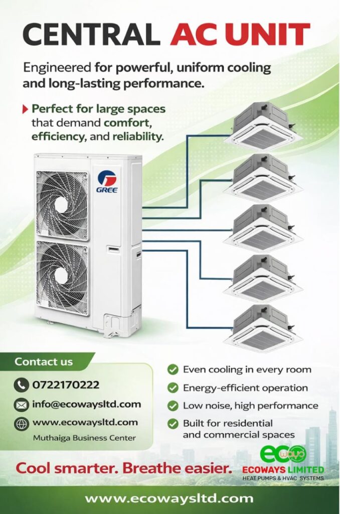 📍Location: Muthaiga Business Center. Upgrade your space today with a Central AC Unit! Where comfort meets efficiency and reliability.